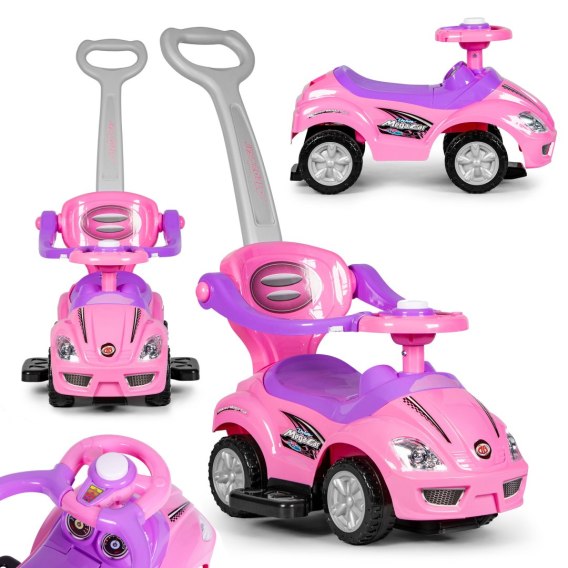 Autko jeździk, chodzik, pchacz 3w1 deluxe klakson - różowe