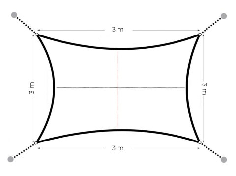 • Zadaszenie w kształcie kwadratu o wymiarze 3x3 m
