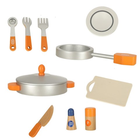 Kuchnia posiada wszystkie niezbędne akcesoria, bez których gotowanie byłoby z pewnością dużo trudniejsze. W zestawie maluch znajdzie garnek z pokrywką, patelnię, deskę do krojenia, sztućce, talerz, a nawet i przyprawy, dzięki którym każdy przygotowany posiłek będzie dużo smaczniejszy!