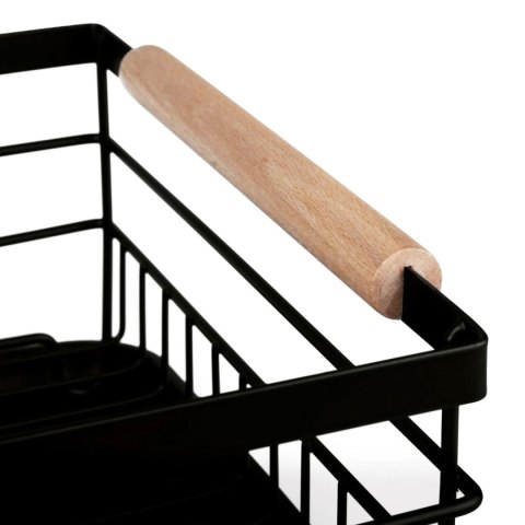Suszarka jednopoziomowa ociekacz do naczyń drewniane uchwyty tacka czarna