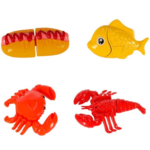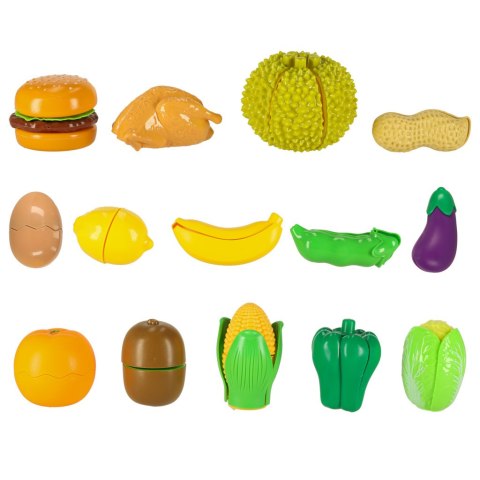 36 elementów- w zestawie znajdują się różnorodne warzywa, owoce i inne składniki spożywcze, ale także akcesoria kuchenne, takie jak talerze czy sztućce